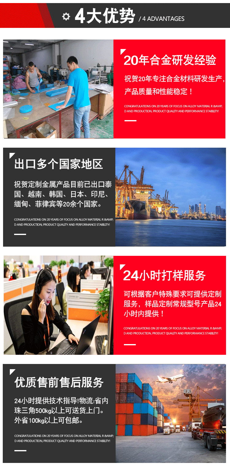 質量穩定 20年合金研發生產經驗