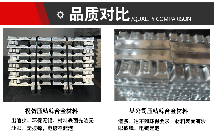 鋅合金是以鋅為主要原料,加入鋁、銅、鎂等金屬元素精確配方熔煉而成。我廠采用優(yōu)質(zhì)原鋅,嚴(yán)格配方和生產(chǎn)。合金具有不粘模,流動(dòng)性好,